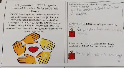 20.01. rīts iesākas ar tematisko klases stundu, kurā audzinātāji izmanto Barikāžu muzeja sagatavotos video materiālus un darba lapas, kā arī citu informāciju. Klašu grupām ir iespēja izstaigāt 1991. gada janvāra Barikāžu notikumu vietas Rīgā.